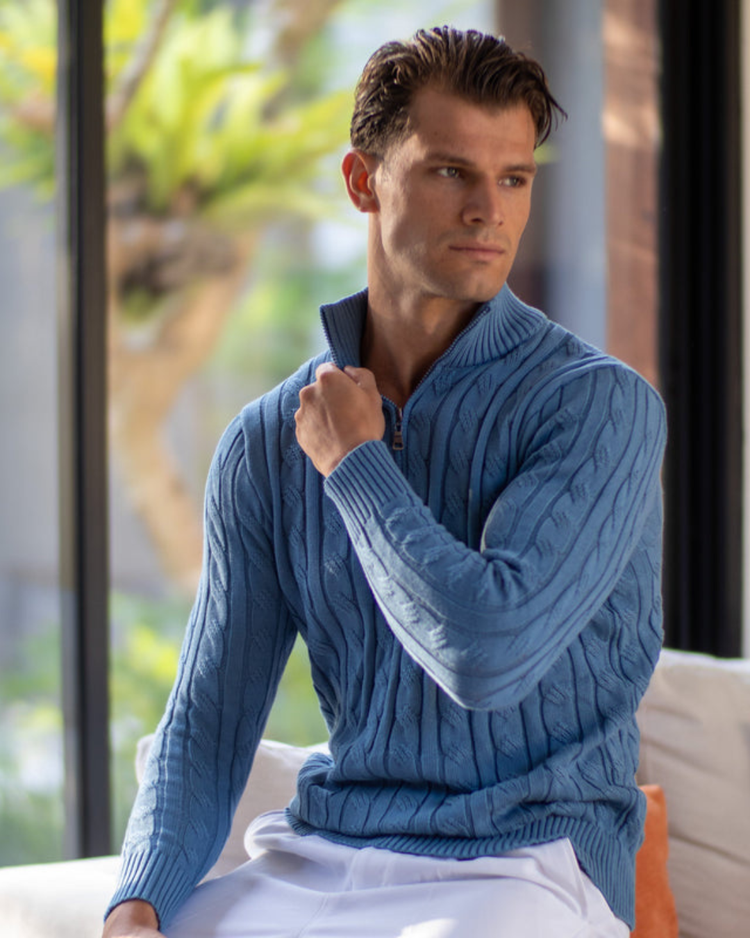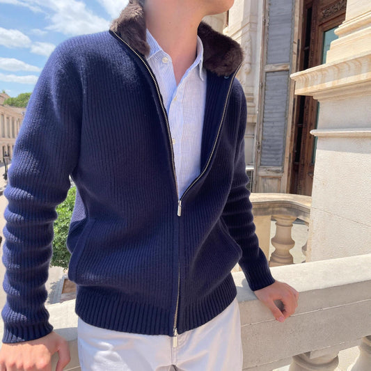 EXTRA-FINE MERINO WOOL ZIP POLO CARDIGAN